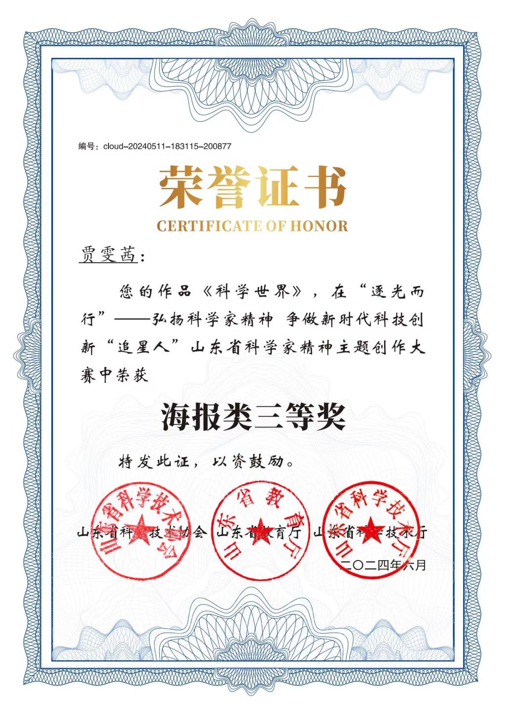 近日,由省科协、省教育厅、省科技厅联合举办山东省科学家精神创作大赛圆满落幕,我校建筑工程学院视觉传达设计专业学子喜获佳绩,其中作品《逐光而行》(作者:景文汶 指导教师:沙俊竹)、《“逐光而行”——弘扬科学家精神》(作者:杨少萍 指导教师:王金龙)获得海报类一等奖,《科学之路》(作者:房牟琦 指导教师:张檬元)等5幅作品获得海报类二等奖,《科学世界》(作者:贾雯茜 指导老师:杨秋璐)等11幅作品获得海报类三等奖。