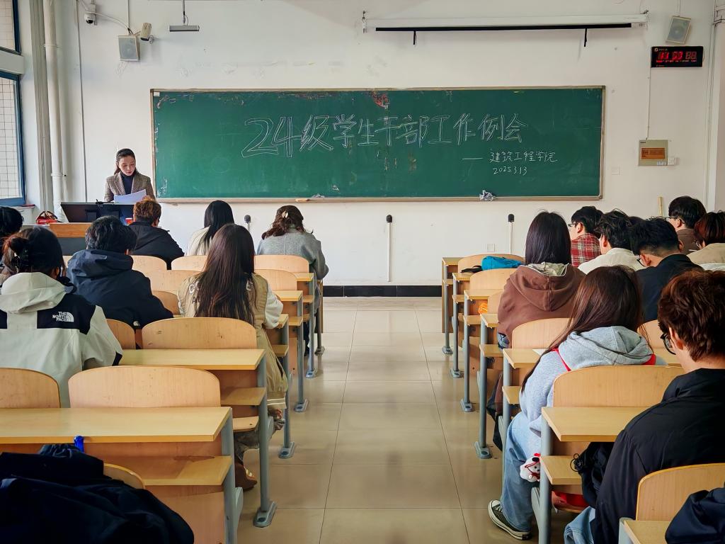 为加强学生干部队伍建设,提升学生干部工作能力和服务水平,建筑工程学院于3月14日在一教118召开了学生干部能力提升培训活动,建筑工程学院党总支副书记陈秀慧,团总支副书记孙中惠,辅导员葛晓菲及24级全体学生干部参加。