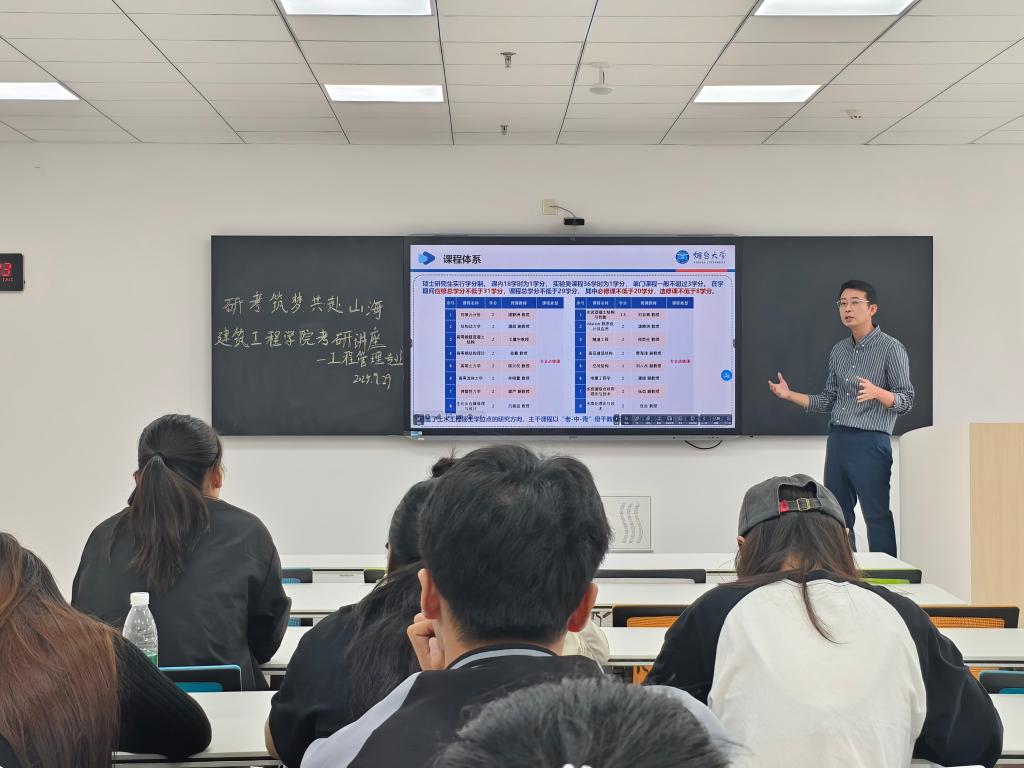为助力工程管理专业新生提前了解考研情况,尽早明确考研方向,为其顺利开启考研之路奠定坚实基础,9月28日上午,建筑工程学院于三教智慧教室S203举办“研考筑梦共赴山海”工程管理专业考研专题讲座。本次讲座由烟台大学土木工程学院岩土教研室主任王丹丹、烟台大学土木工程学院老师张亮主讲,为在场学子献上了一场兼具专业性与指导性的考研“领航课”。