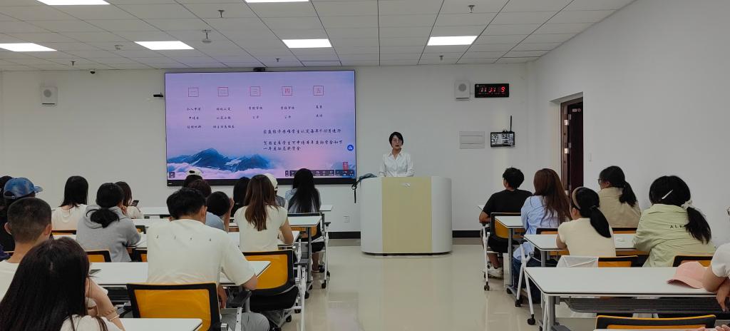随后,葛晓菲老师就奖学金综合测评方案为新生们进行了细致剖析。她结合实例,详细讲解了综合测评的思想品德、学业成绩、身体素质、实践与创新能力等维度的评分标准与加分细则。葛老师指出,奖学金评定是对学生全面发展的综合评价,她希望新生们从入学伊始就注重全面发展,勤奋学习,积极实践,不断提升综合素质。