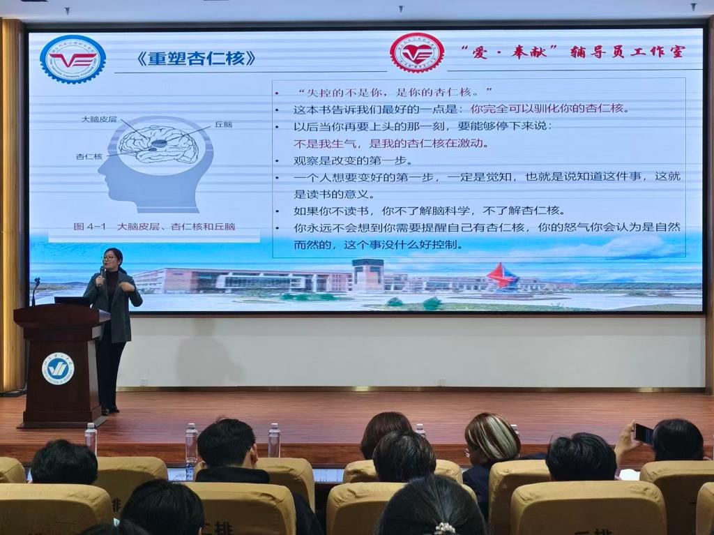 仪式上,学院荣幸地邀请到“书海泛舟”读书会创始人韩如坤老师担任主讲嘉宾。韩老师长期致力于阅读推广和书香校园、书香社区建设工作,是一位经验丰富、充满热情的教育工作者和文化传播者。在全体师生的热烈掌声中,韩老师为在场师生带来了首场主题分享,她结合自身实践,深刻阐述了阅读的价值与力量。