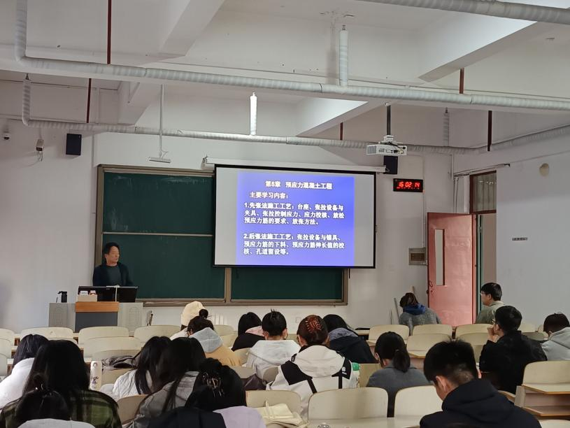李波老师通过大量的工程实例和工程构件剖析,讲授预应力混凝土工程中所使用的先张法与后张法,通过对比工艺差异,清晰阐释了两种方法的施工流程与核心原理。课程中,李老师结合工程实例,生动说明两者的成本与适用范围差异,教学方式注重互动,辅以多媒体演示关键工序,使学生直观理解预应力传递机制,课堂反馈积极,学生普遍掌握了两类工艺的优劣势及设计要点,提升了实际应用能力。