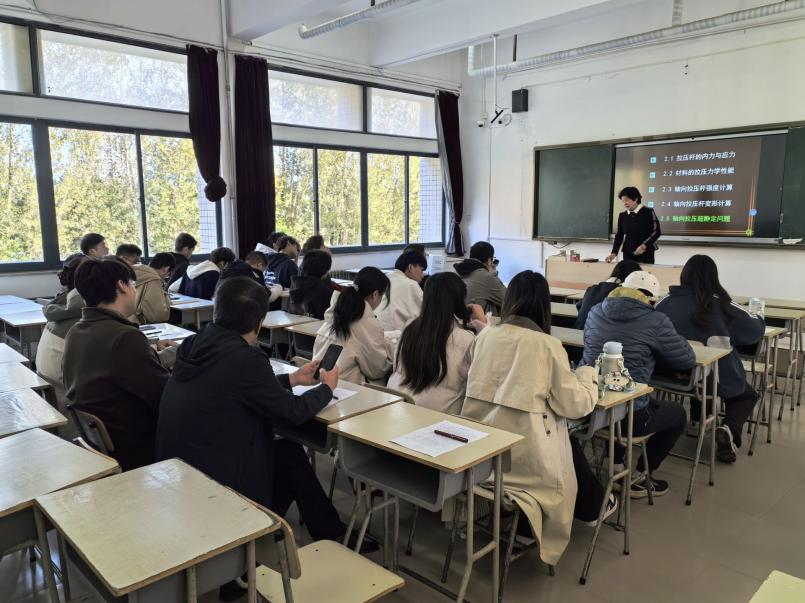 磨课活动以授课观摩为首个环节,各位老师以在授专业课进行公开课讲课展示。曲淑英老师以“情境导入—问题探究—深入创新”为主线,通过经典例题讲解、小组辩论、深度剖析等多样化形式,引导学生深入理解轴向拉压超静定问题的求解过程,同时巧妙融入价值观引导。课堂氛围活跃,学生参与度高,充分展现了曲教师扎实的教学功底与深厚的教育智慧。