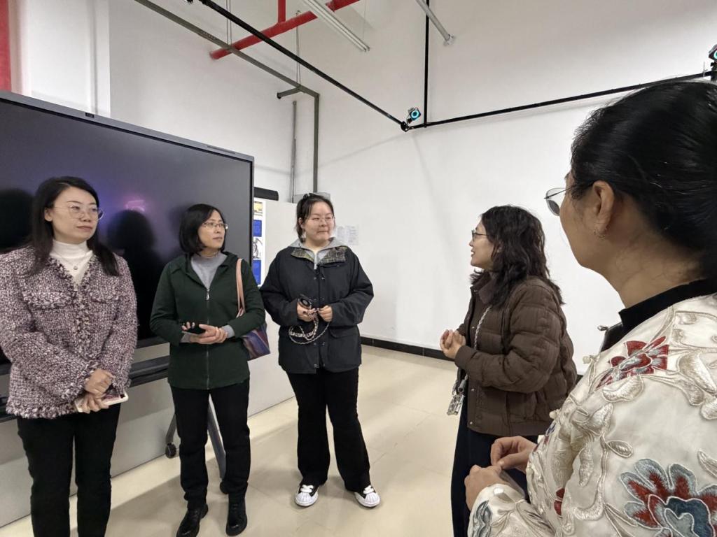 11月13日上午,山东城市服务职业学院文化与创意学院副院长王姿靓,数字媒体技术专业教研室主任袁芳及教师赵静、王倩倩一行到访我院,重点考察数字媒体艺术系相关实验室设备及实验课程建设情况,并对可视化交互媒体实验室进行深入学习与了解。