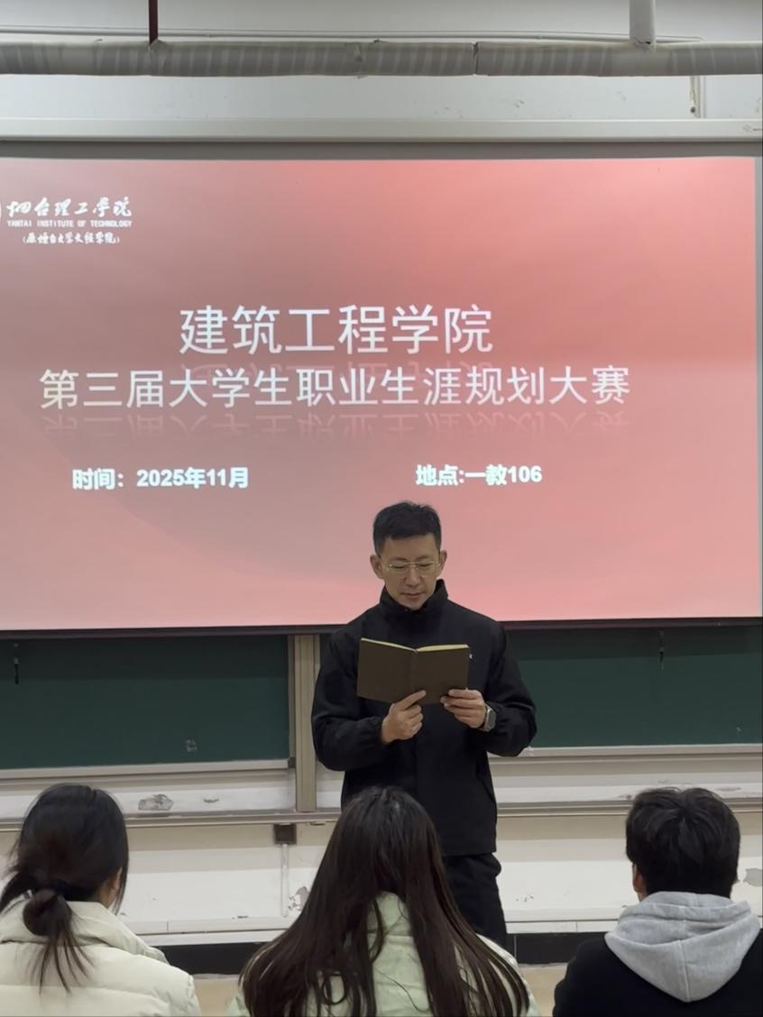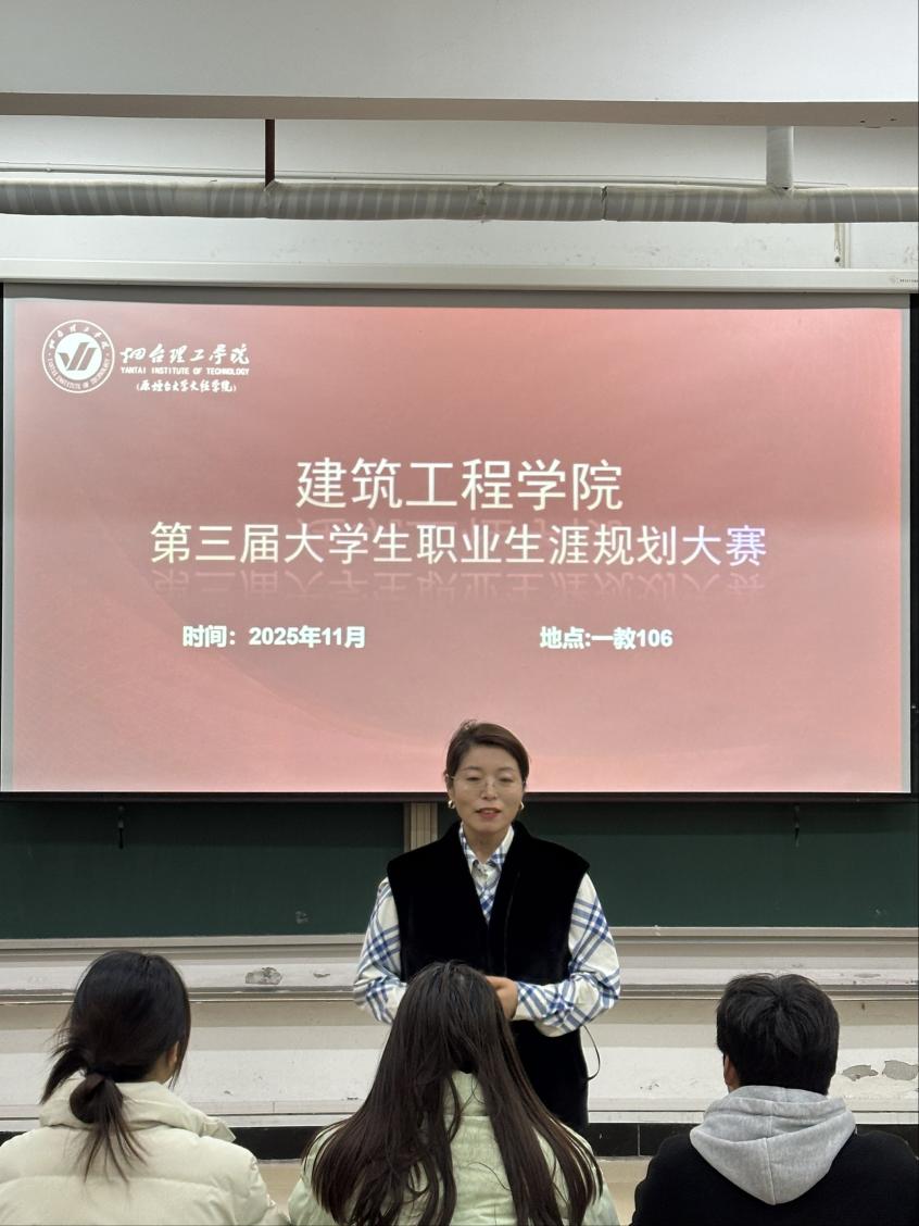 为引导建筑工程学院学子树立清晰的职业发展认知,将专业学习与行业需求深度衔接。近日烟台理工学院建筑工程学院“筑梦未来,规划先行”职业规划大赛在一教106举办。本次赛事由建筑工程学院党总支副书记臧延云、辅导员于小康老师以及建筑工程学院学生参与,赛事在热烈的氛围中顺利落幕,为心怀理想的建工学子搭建了锁定职业方向、展示自我的优质平台。