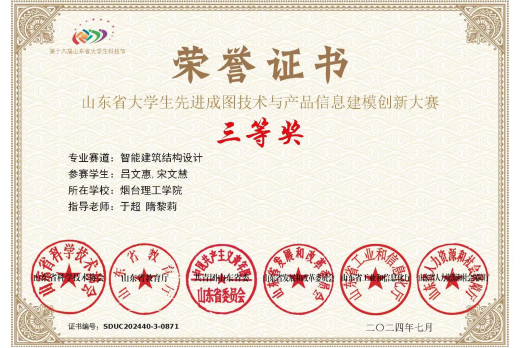 10.2024年山东省大学生先进成图技术与产品信息建模创新大赛-智能建筑结构设计三等奖;