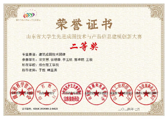 8.2024年山东省大学生先进成图技术与产品信息建模创新大赛-建筑成图技术团体二等奖;