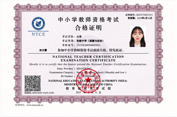 热爱祖国,热爱人民,政治立场坚定,在党的关怀与培养下,她成为一名光荣的中共预备党员。思想上积极进取,作为班级团支书,坚持学习团课知识,将所学与实践相结合,发挥自身先锋模范作用,努力践行全心全意为人民服务的宗旨。