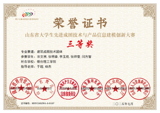 14.2025年山东省大学生先进成图技术与产品信息建模创新大赛-建筑成图技术团体三等奖;