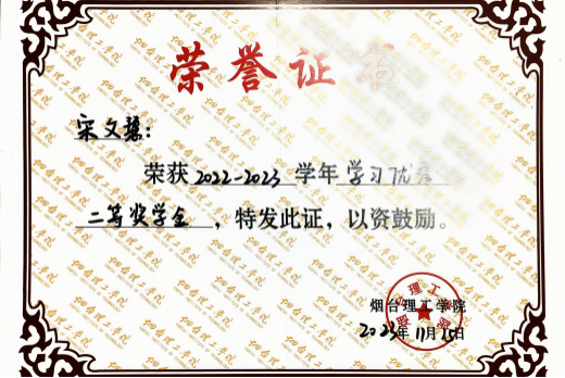 1.2022-2023学年学习优秀二等奖学金;