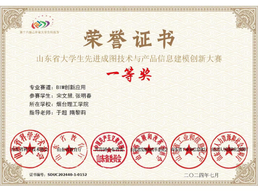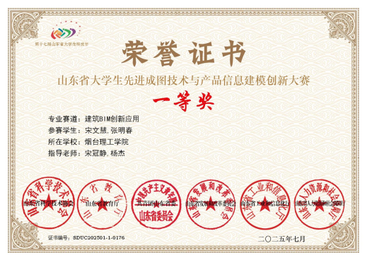 13.2025年山东省大学生先进成图技术与产品信息建模创新大赛-BIM创新应用一等奖;