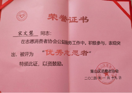 6.2024年莱山区消费者协会优秀志愿者;