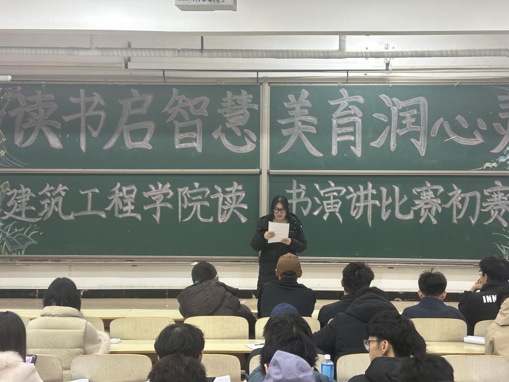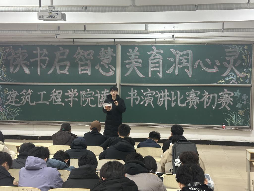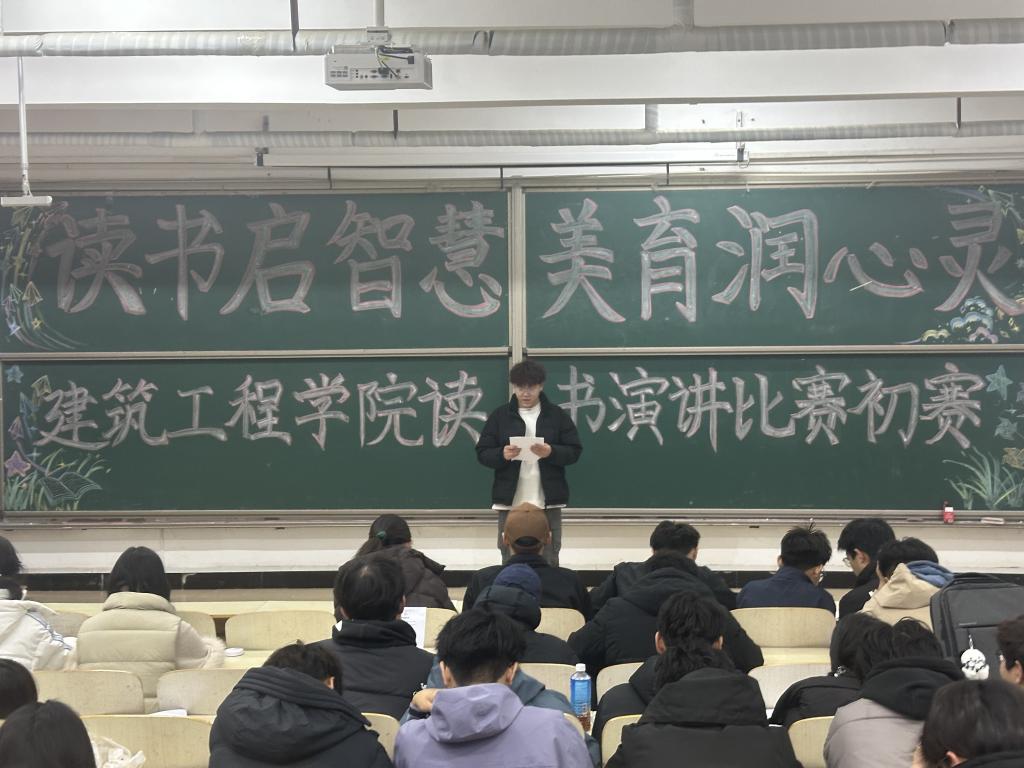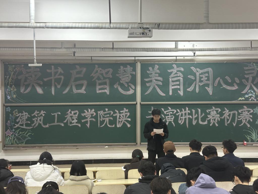 为深入推进校园美育建设,引导学子在阅读中启迪智慧、涵养心灵,建筑工程学院以“读书启智慧 美育润心灵”为主题的读书演讲比赛初赛于2025年11月30日在一教105顺利举行。本次初赛为全院学子搭建了以书会友、以言传情的交流平台,也为后续决赛选拔出一批兼具表达力与思想力的优秀选手。