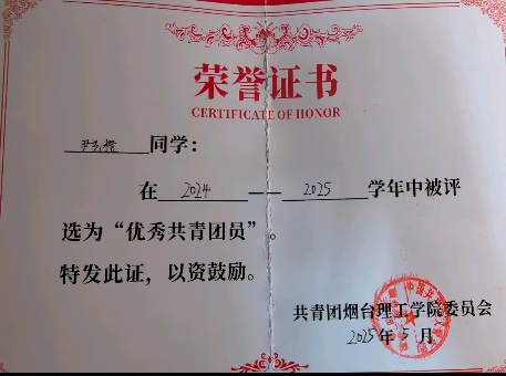 1.2024-2025学年“优秀共青团员”荣誉称号;