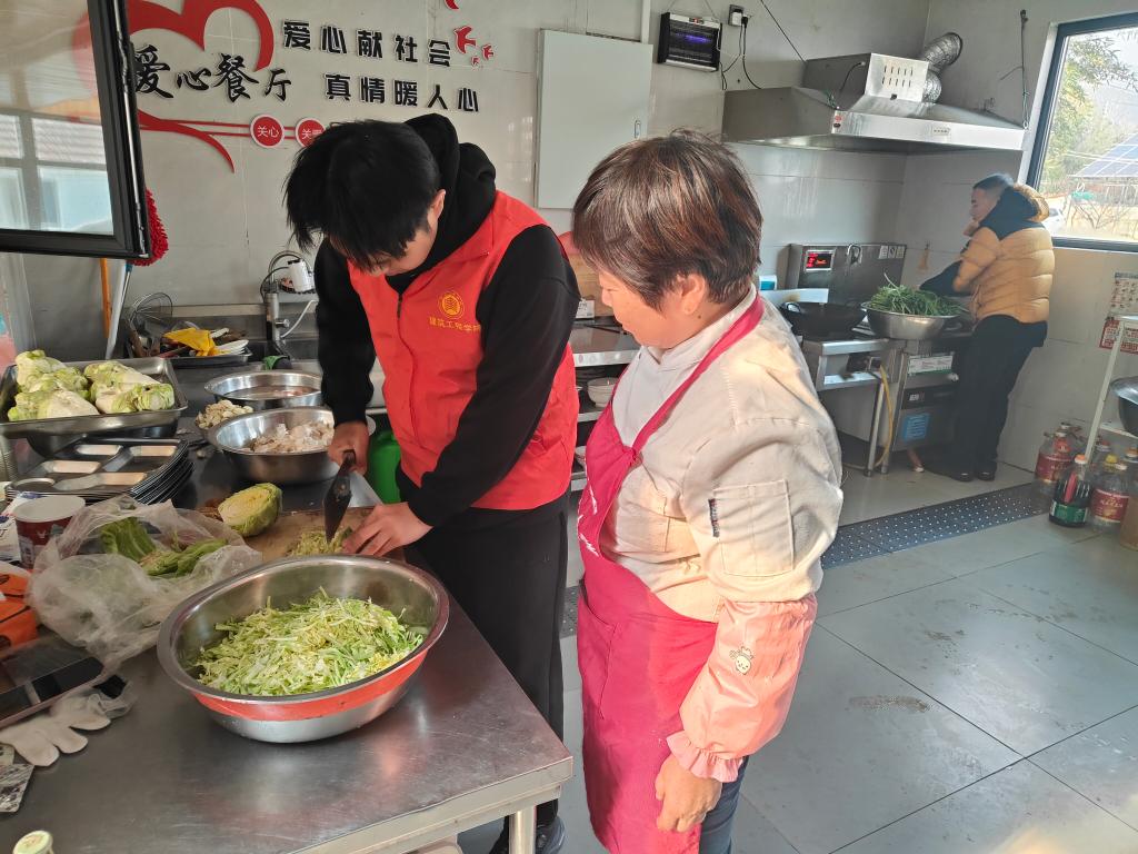 一抵达爱心食堂,志愿者们便迅速投入服务。大家分工协作、默契配合,有的拿起菜刀细心切配食材,有的拿起抹布擦拭桌椅门窗,有的挥动拖把清理地面污渍,忙碌的身影穿梭在食堂各个角落。“孩子们手脚麻利,把食堂收拾得干干净净,还帮我们准备了午饭食材,真是太贴心了!”食堂的老人们看着焕然一新的环境,脸上满是欣慰的笑容。