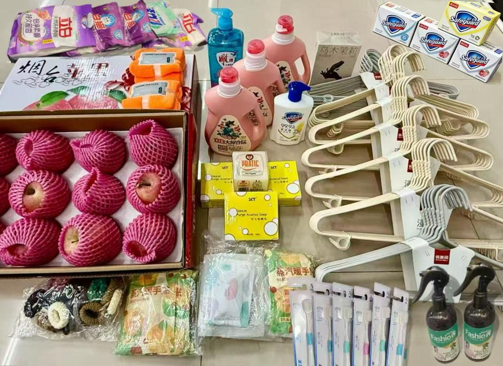 活动筹备阶段,学院老师为让同学们感受到实实在在的关怀,精心采购了苹果、洗衣液、衣服架、香皂等大批实用生活用品,作为活动物资免费发放给各宿舍。红彤彤的苹果寓意平安顺遂,瓶装洗衣液、衣服架等物资直击日常洗护需求,每一份物品都精准对接同学们的生活痛点,既解决了实际问题,更让大家在细节中体会到学院的贴心与温暖,切实增强了归属感。
