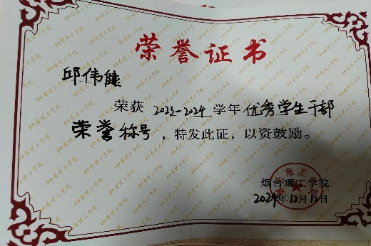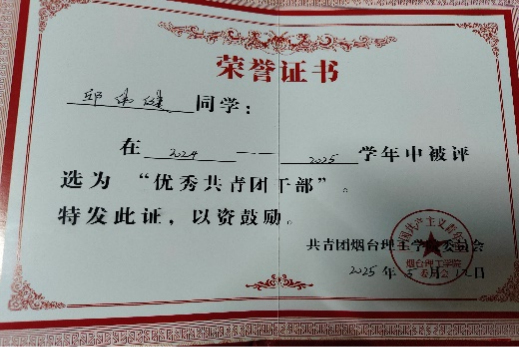 11.2025年5月获烟台理工学院“优秀共青团干部”;
