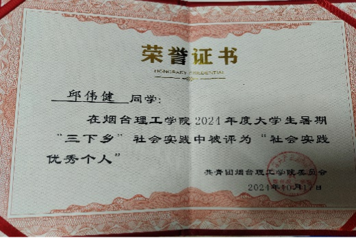 8.2024年10月获烟台理工学院“三下乡”社会实践优秀个人;