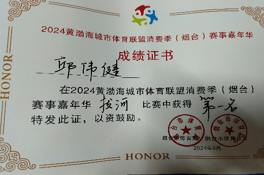 7.2024年9月获黄渤海城市体育联盟(烟台)赛事嘉年华拔河一等奖;