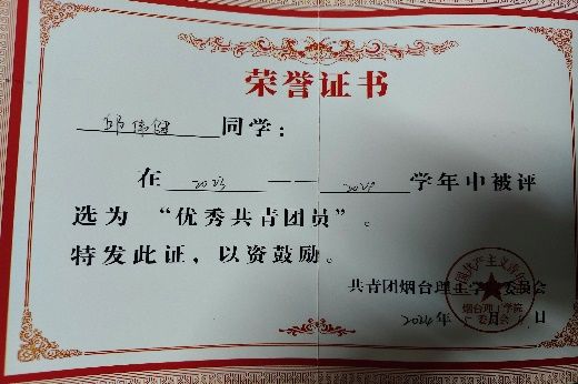 3.2024年5月获烟台理工学院“优秀共青团员”;