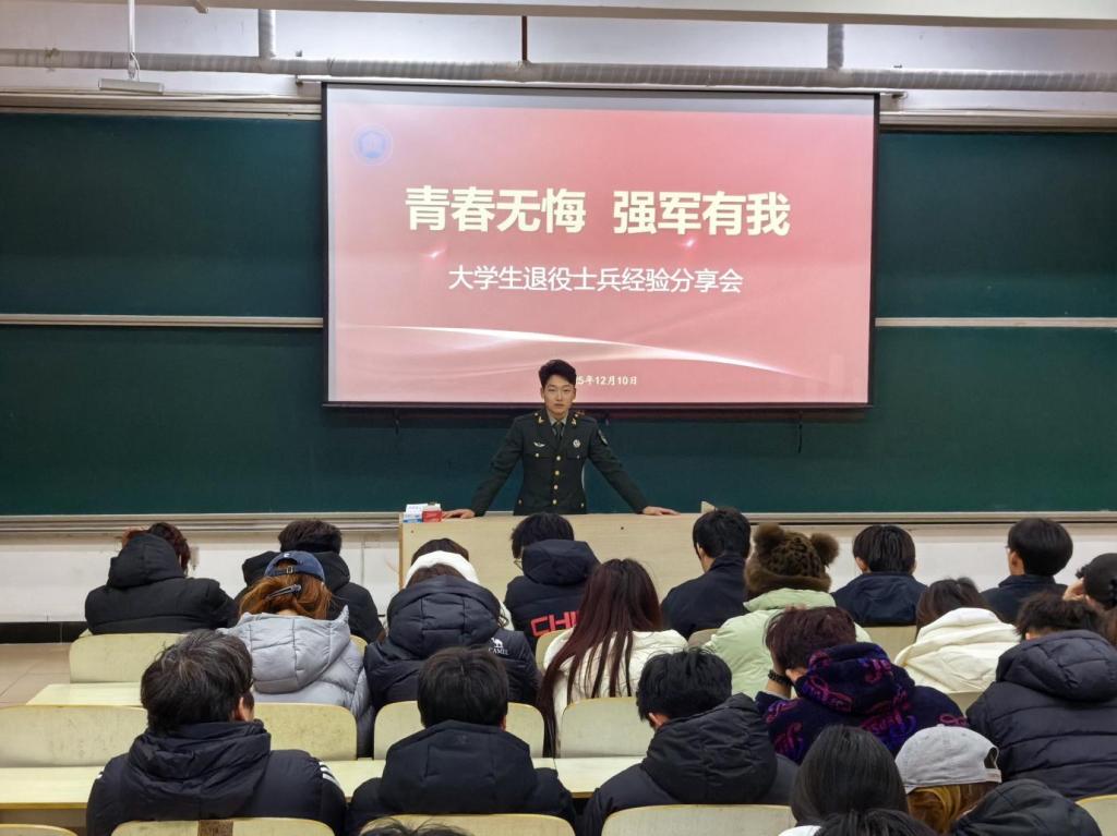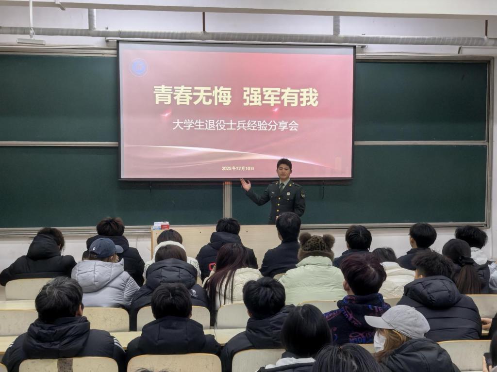 为弘扬军旅精神,将军人的责任与担当融入建筑工程学院学生的学习与成长,建筑工程学院于2025年12月10日在一教206举办“青春无悔 强军有我”大学生退役士兵经验分享会,建筑工程学院辅导员马杰及学生代表到场参与。