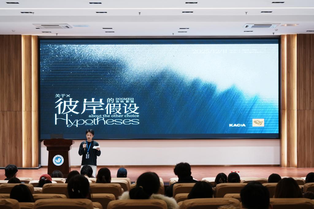 2025年12月11日,建筑工程学院数字媒体艺术系在三教六楼报告厅举办“关于彼岸的假设”KACA影像放映活动。同时此次活动邀请嘉宾《上岸》导演齐炎焱、逗马贰叁创始人蔡东妮进行关于影像方面的介绍与分享。