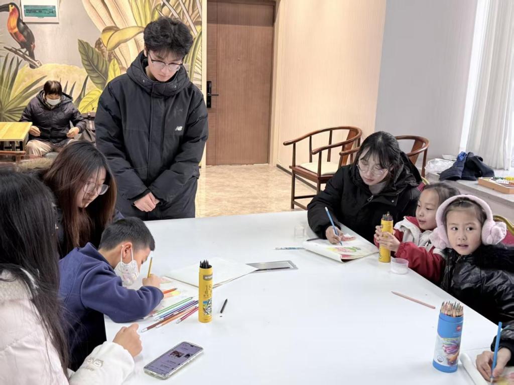 为丰富社区居民精神文化生活,践行志愿服务精神,12月20日,烟台理工学院建筑工程学院微光致远志愿服务队走进中海长安云锦小区,开设趣味彩铅绘画课堂。4名小朋友齐聚一堂,在志愿者指导下勾勒冰激凌的诱人模样。
