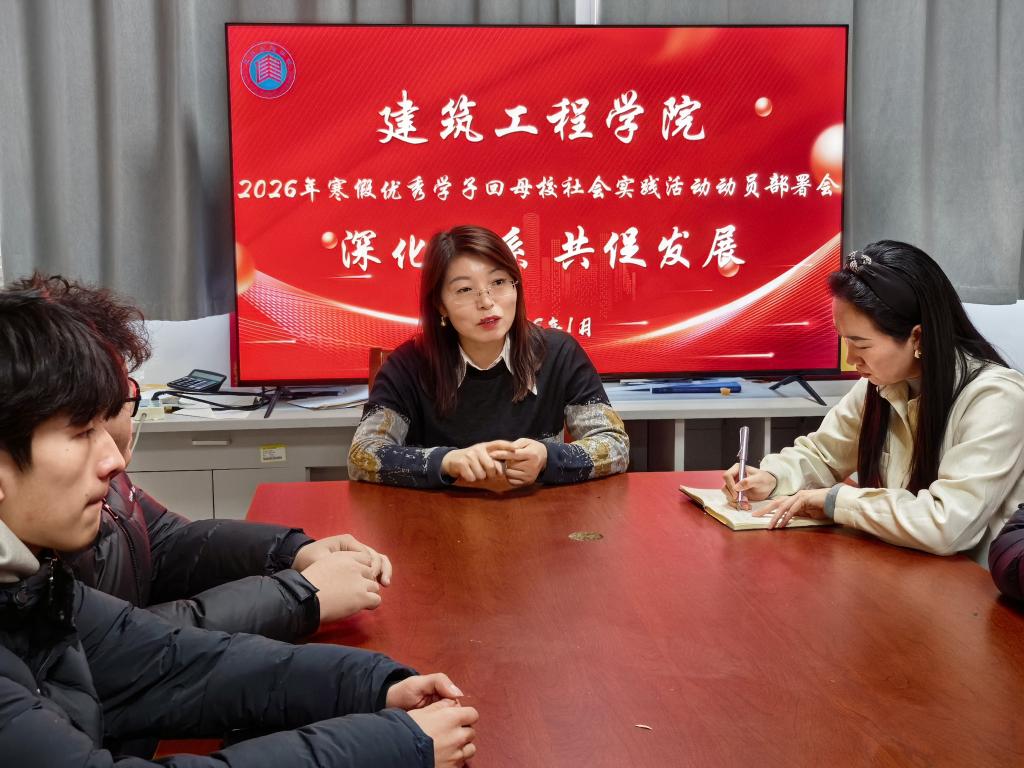 为深化校际交流,助力学生成长,增进广大考生对学校的了解,同时激发广大学子爱校思故的家国情怀,建筑工程学院于1月22日在综合楼S448召开了2026年寒假优秀学子回母校社会实践活动动员部署会。会议由建筑工程学院党总支副书记臧延云、团总支副书记孙中惠及学生代表出席。