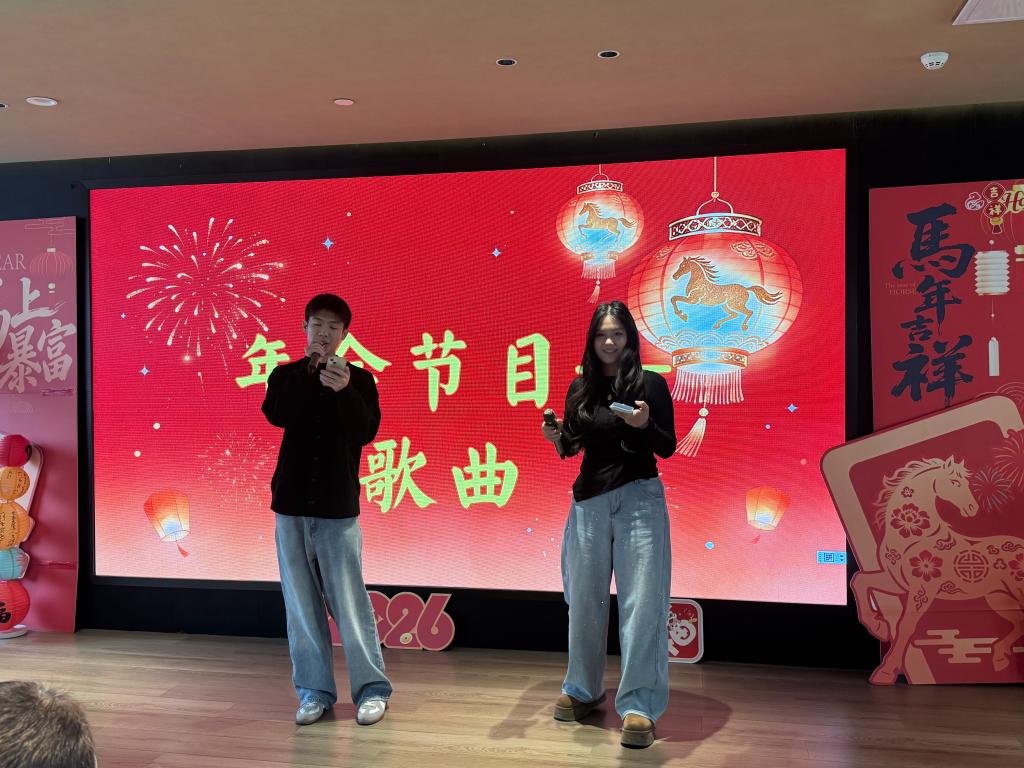 紧接着,文艺表演与趣味游戏环节精彩上演,将年会气氛推向一个又一个高潮。王瑛琦、寻雅心两位老师首先带来了温暖动人的开场歌曲《我们的歌》,悠扬的旋律瞬间点燃了全场热情。