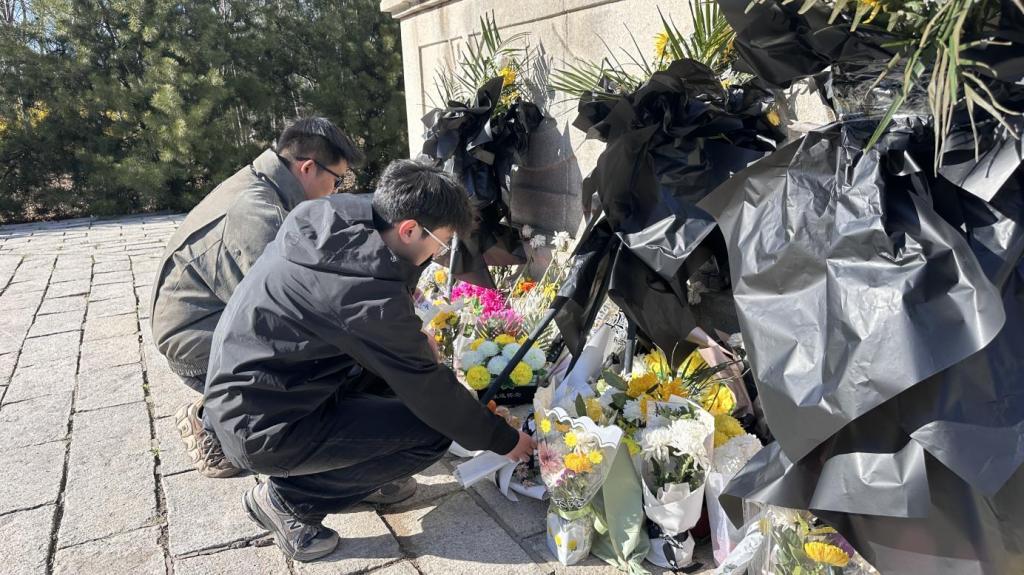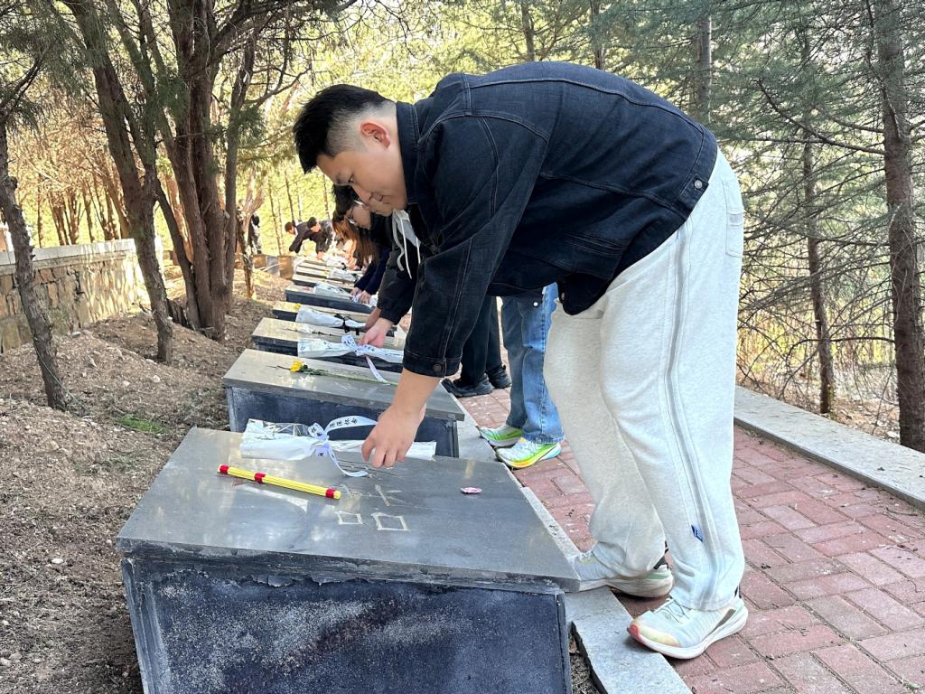 随后,在工作人员的引导下,全体人员有序移步至烈士墓群,依次为先烈墓碑敬献鲜花。洁白的菊花、鲜艳的康乃馨簇拥在墓碑前,既是对先烈的深切缅怀,更是建工学子对革命精神的永恒传承。大家手持鲜花,缓步走过每一座墓碑,在低头致敬间,将对先烈的崇敬与哀思融入每一个细节之中。