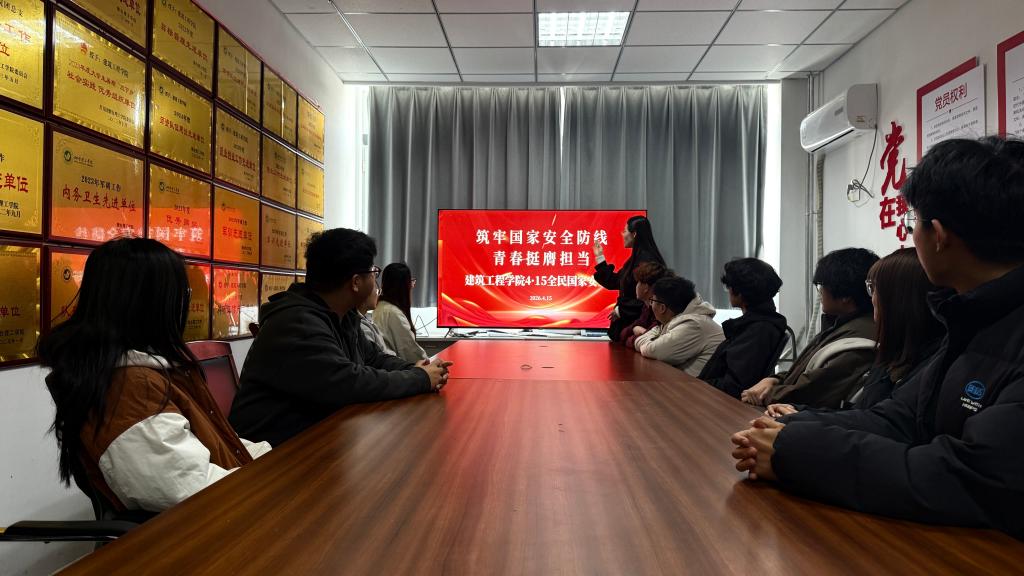 为深入学习贯彻总体国家安全观,切实增强全院师生国家安全意识,在第十一个全民国家安全教育日来临之际,建筑工程学院于综合楼s448开展“筑牢国家安全防线 青春挺膺担当”主题教育活动,本次活动由安文静老师主持,建筑工程学院学生参与学习。