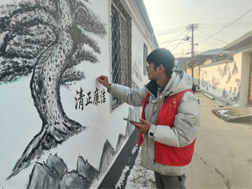 立足专业特色,学院创新廉洁文化传播载体,组织师生党员骨干开展“绘清廉底色 筑时代清风”廉洁主题墙绘社会实践活动。师生们充分发挥视觉传达、艺术设计专业所长,将廉洁格言、红色基因、优良家风与墙体彩绘、视觉设计有机结合,把抽象的廉洁理念转化为生动直观、兼具艺术性与教育性的墙绘作品,打造了一个个集思想性、观赏性、传播性于一体的“流动廉洁课堂”。这项活动既是一次专业实践教学,更是一堂行走的思政课,让师生在匠心创作中厚植廉洁情怀,也让廉洁文化走出校园、走进社区,实现了“专业育人、廉洁育人、服务育人”的有机统一,彰显了艺术专业在廉洁文化传播中的独特价值。